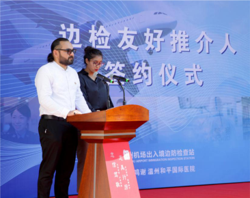 最近蘇瑪、豪孟德夫婦一直溫州各地巡回演講,還被評為甌海我與亞運同行形象大使、楠溪江公益宣傳大使等如今,他們不僅是和平國際醫院的醫生更是邊檢的“戰士”,守護好溫州的大門。
