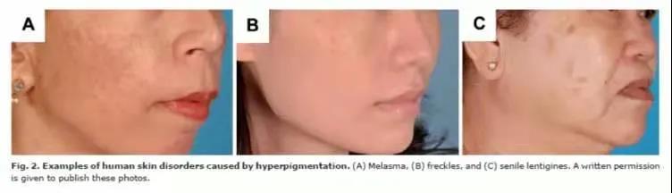 當(dāng)紫外線到達(dá)皮膚內(nèi)層時(shí),皮膚會(huì)產(chǎn)生更多黑色素。黑色素是皮膚基底層黑色素細(xì)胞分泌的著色物質(zhì),決定了皮膚的顏色,當(dāng)某些黑色素細(xì)胞過度活躍向表層細(xì)胞輸送了過多的黑色素時(shí),就會(huì)產(chǎn)生痣、斑等肉眼可見的色素異常。