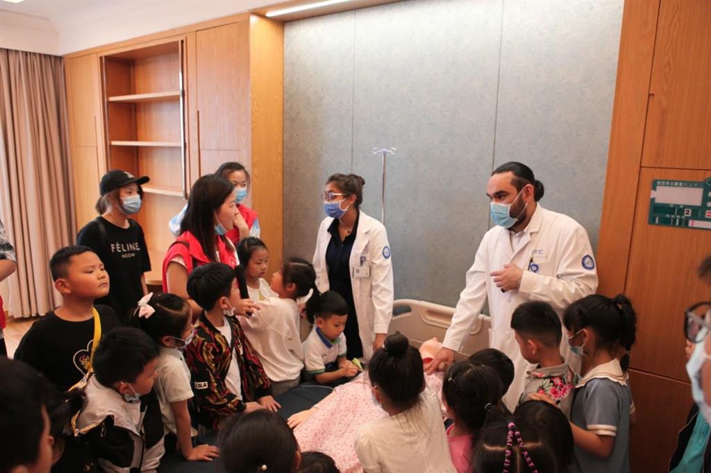 體驗(yàn)完當(dāng)“小小醫(yī)生”,和平國際醫(yī)院跨國醫(yī)生蘇瑪和豪孟德夫婦向小朋友們講解了“止血和包扎”、“心肺復(fù)蘇”等基本家庭急救知識(shí),小朋友們熱情高漲,爭先想要進(jìn)行演練。