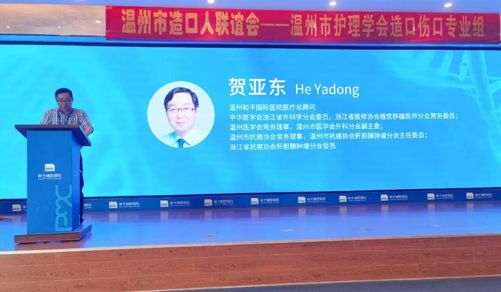 和平國際醫院院長賀亞東介紹了醫院的基本情況及發展模式,他還介紹了和平國際醫院新開設的浙江省首家護理工作室--陳愛華傷口造口護理工作室的情況。他說,這是和平國際醫院護理領域的改革與創新,充分實踐了“讓生命值得最好的對待”的核心價值觀,體現了為每一位患者提供有尊嚴、有溫度、高品質醫療服務的使命。